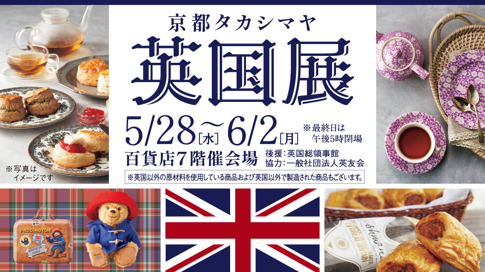 京都高島屋では5月28日(水)から6月2日(月)まで、第3回目となる「英国展」を開催。在大阪英国総領事館後援のもと、本場のスコーンやフィッシュ&チップス、紅茶などの英国グルメに加え、アパレルや雑貨まで幅広く展開。アフタヌーンティーも楽しめる充実のイベントとなっています。