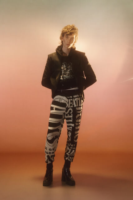 マストハブアイテムとして、ポール・マッカートニーのワードローブにインスピレーションを受けた再生ナイロン素材のボンバージャケット、ギャラクシーウォッシュのオーガニックコットンデニム、パッチワークカーディガンコート、ニット素材のトラックスーツ、そしてザ・ビートルズのイコノグラフィ(図像学)をグラフィックやコラージュで表現したアクセサリーなどが揃います。