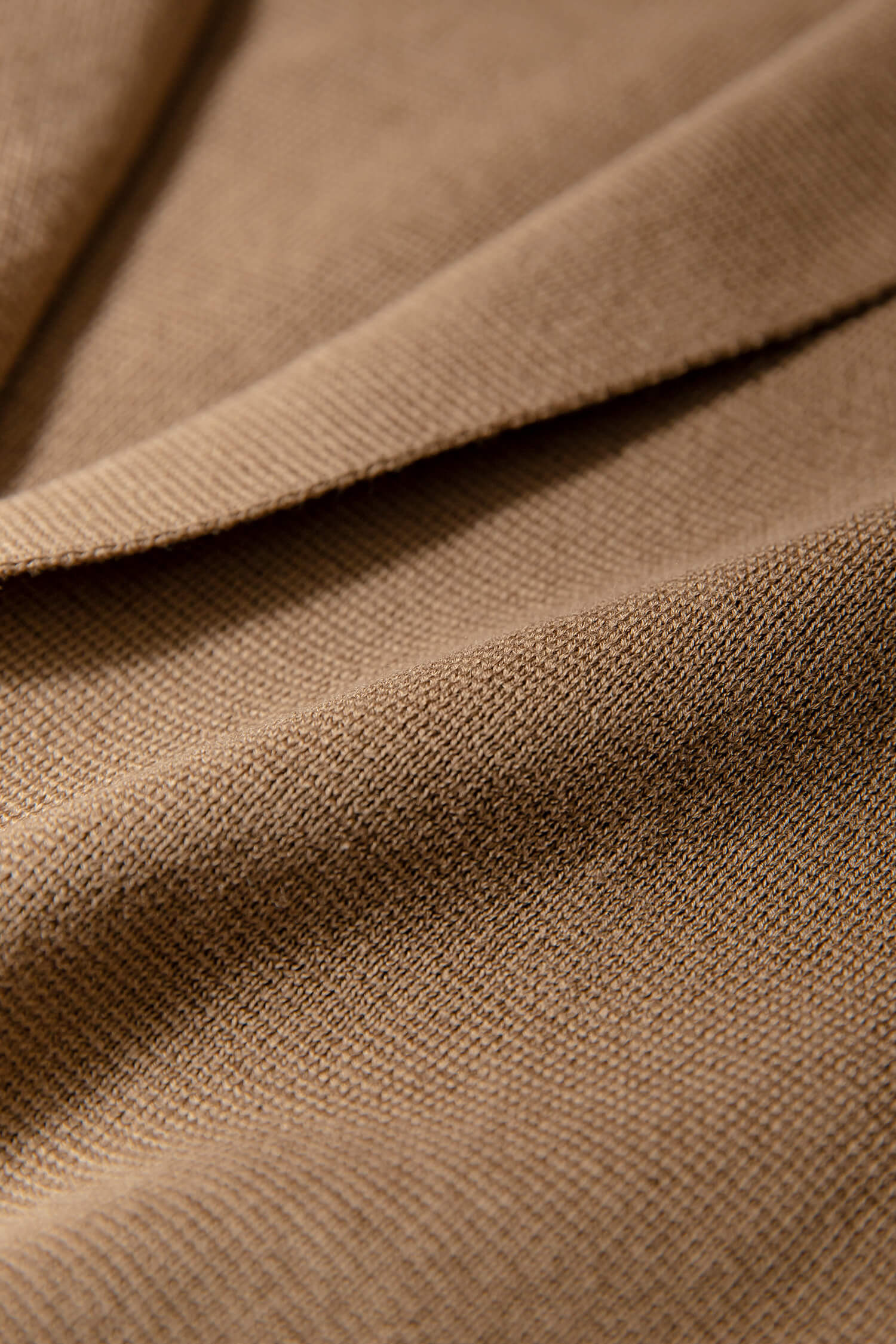 Vゾーンを狭くすることでブリティッシュスタイルのスーツに近い顔つきとなり、タイドアップスタイルに合わせることもできます。通常のジャケットとは異なり、芯地もなく、ニット特有の伸縮性がある為、快適な着心地を提供してくれます。
